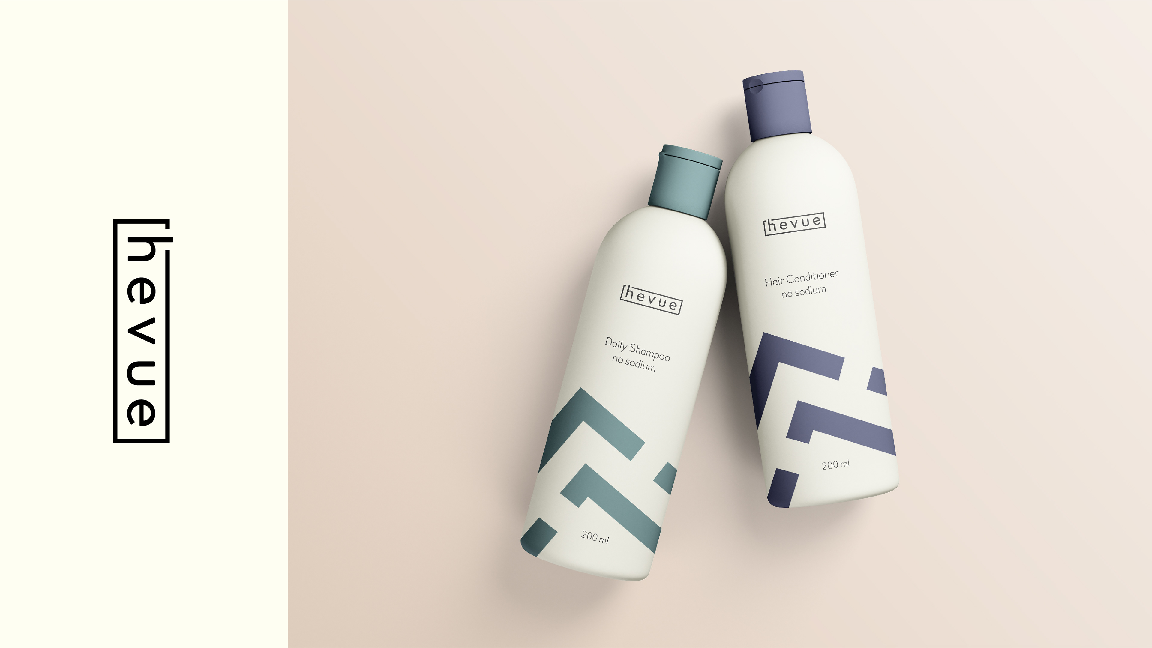 Hevue is an upcoming hair and skincare brand. The briefing was to create a minimalist logo and packaging, focusing on both men and women in their 20s.